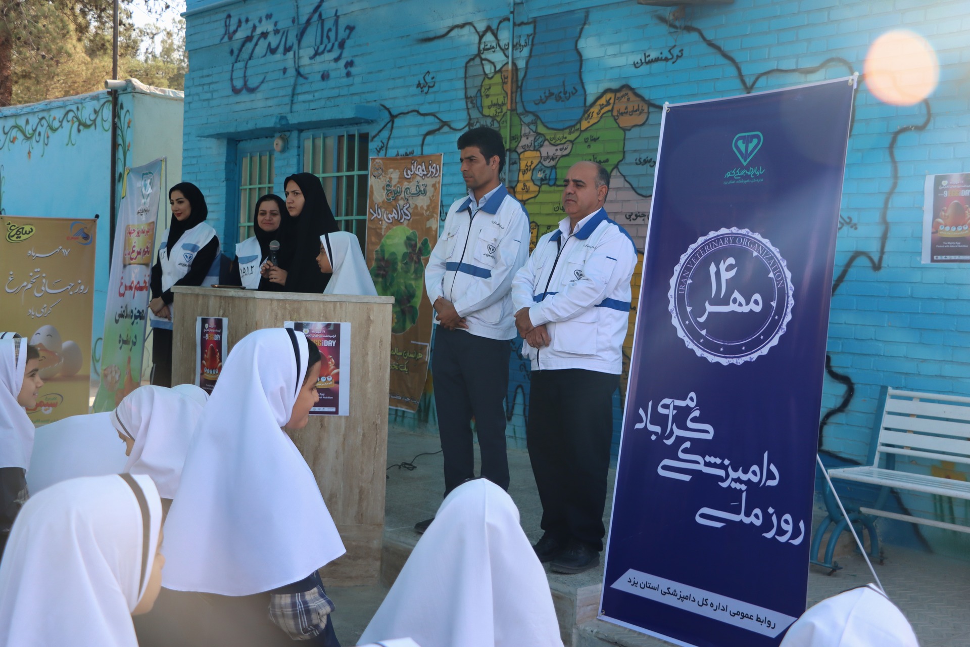 به گزارش روابط عمومی اداره کل دامپزشکی استان یزد، به مناسبت گرامیداشت هفته دامپزشکی و روز جهانی تخم مرغ، جمعی از همکاران دامپزشکی استان با حضور در دبستان دخترانه مهدیه، برنامه‌ای آموزشی و فرهنگی ویژه‌ای را برای دانش‌آموزان این مدرسه برگزار کردند.
