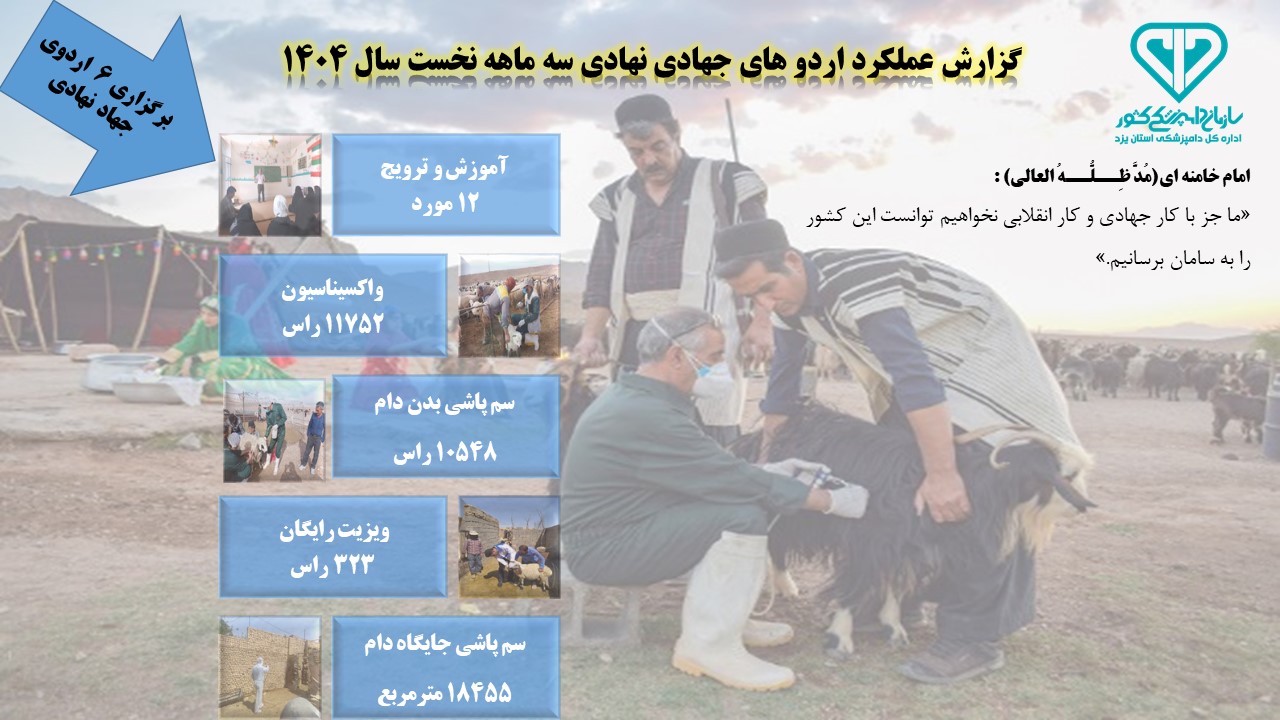 اردو های جهادی نهادی سه ماه اول سال 1404 1404/04/04 - 06:37 - تعداد بازدید: 1 - کد خبر : 343130 - گروه خبری : گروه های مطالب,اسلایدر,رزمایش جهادی دامپزشکی استان یزد - تعداد نظرات : 0