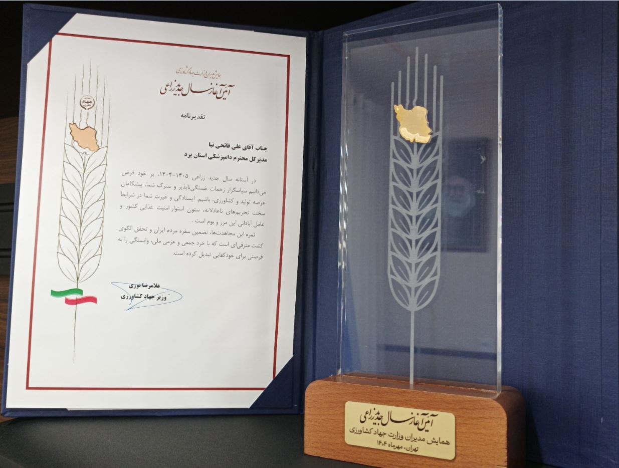 این تجلیل به‌منظور قدردانی از عملکرد مؤثر، مدیریت هوشمند و جهادی، و نقش‌آفرینی در ارتقای بهره‌وری و پایداری تولید در شرایط دشوار اقلیمی و اقتصادی صورت گرفت.
